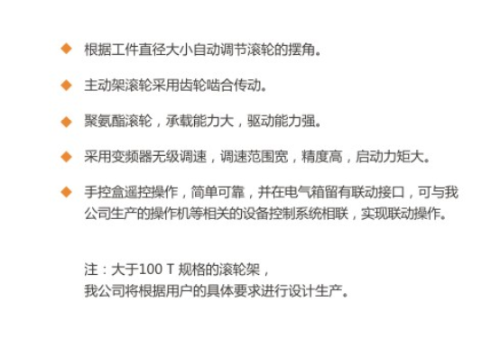 根据工件直径大小自动调节滚轮的摆角。